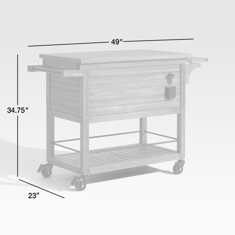 This handsome, full-service cooler transcends function in beautiful acacia wood with black-finished stainless steel accents. Constructed with sturdy mortise-and-tenon joinery, this striking outdoor drink station is loaded with entertaining-enhancing extras. The top lifts to a generously sized divided cooler with drain plug for storing ice, iced drinks and frozen desserts. On the exterior, a bottle opener is accompanied by a holder for popped tops. A fold-down shelf on one end of the cart holds glasses or cocktail napkins, while the opposite side offers a hanger for bar towels. Down below, a slatted shelf with metal rails safely stores extra bottles and six-packs. Locking caster wheels lets our exclusive outdoor cooler easily move about the patio and anchor into place.
