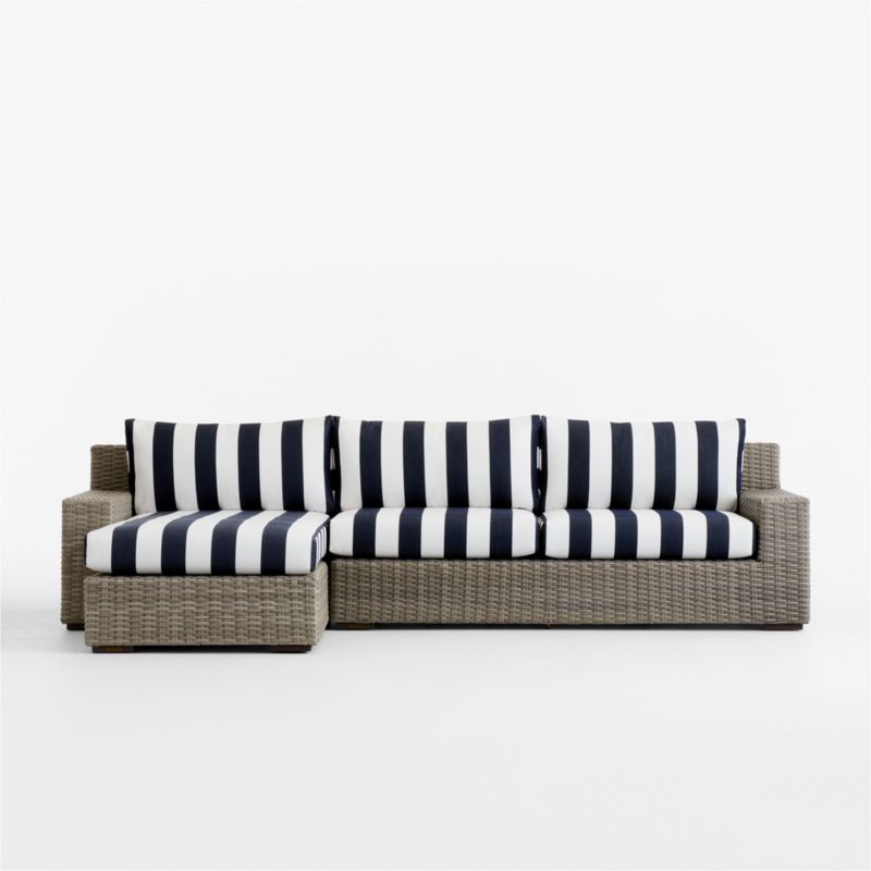 Abaco Resin Wicker 2-Piece Left-Arm Chaise Outdoor Sectional Sofa with Navy and White Cabana Stripe Sunbrella ® Cushions