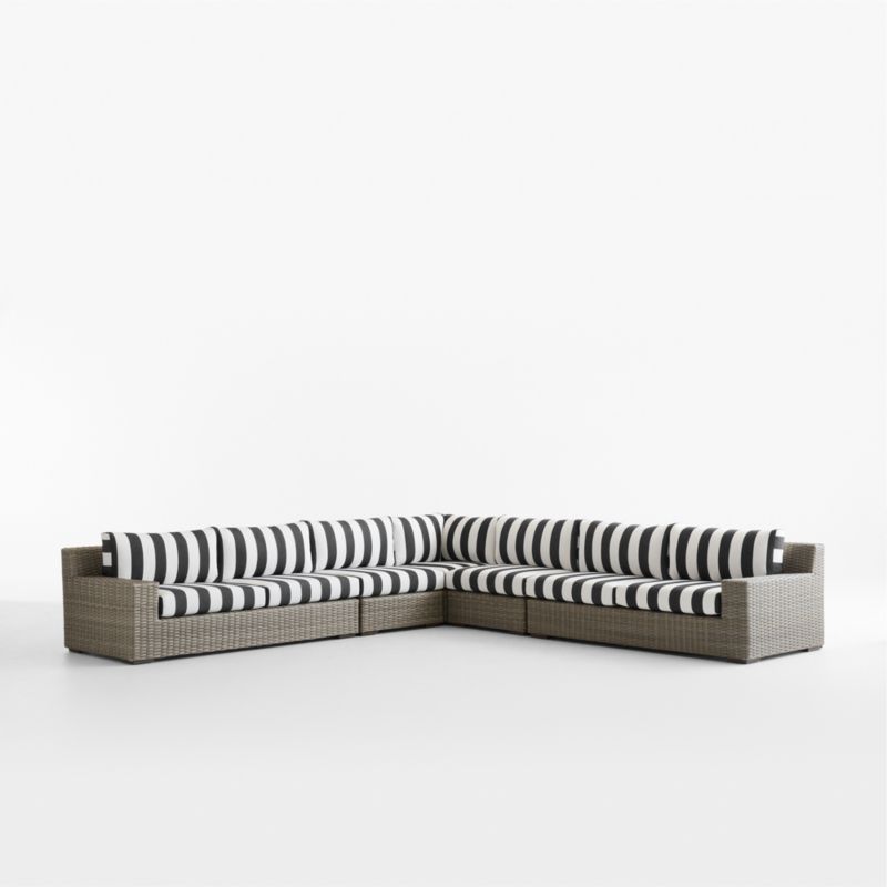 Abaco Resin Wicker 5-Piece L-Shaped Outdoor Sectional Sofa with Black and White Cabana Stripe Sunbrella ® Cushions