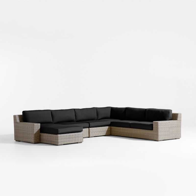 Abaco Resin Wicker 5-Piece Left-Arm Chaise Outdoor Sectional Sofa with Canvas Black Sunbrella ® Cushions