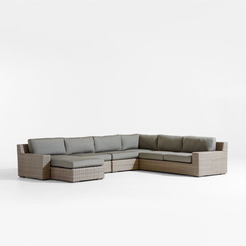 Abaco Resin Wicker 5-Piece Left-Arm Chaise Outdoor Sectional Sofa with Canvas Charcoal Sunbrella ® Cushions