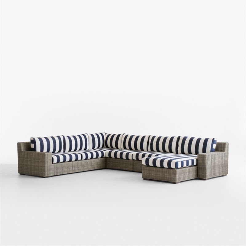 Abaco Resin Wicker 5-Piece Right-Arm Chaise Outdoor Sectional Sofa with Navy and White Cabana Stripe Sunbrella ® Cushions