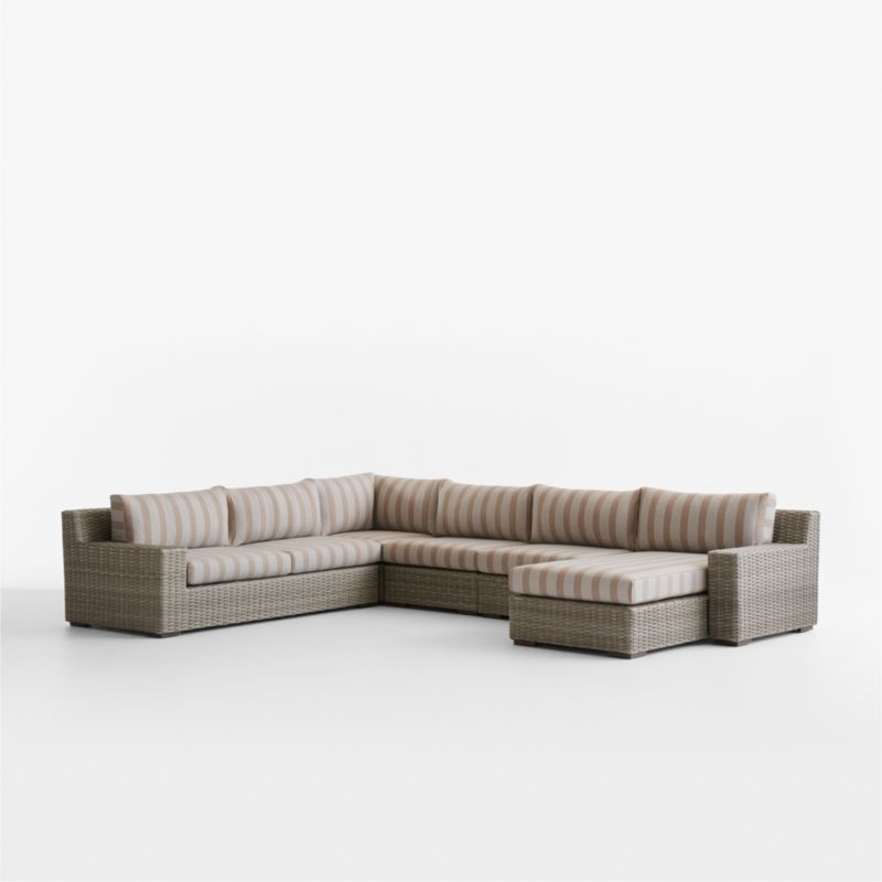 Abaco Resin Wicker 5-Piece Right-Arm Chaise Outdoor Sectional Sofa with Range Dune Stripe Sunbrella ® Cushions