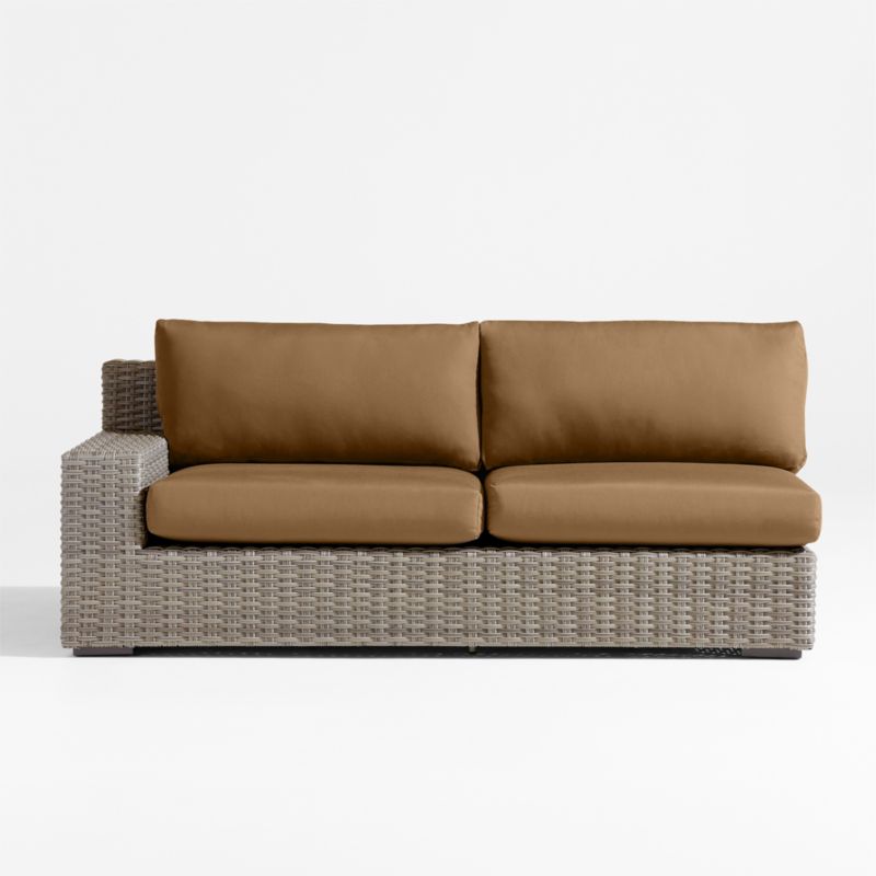Abaco Resin Wicker Left-Arm Outdoor Sofa with Cast Teak Sunbrella ยฎ Cushions