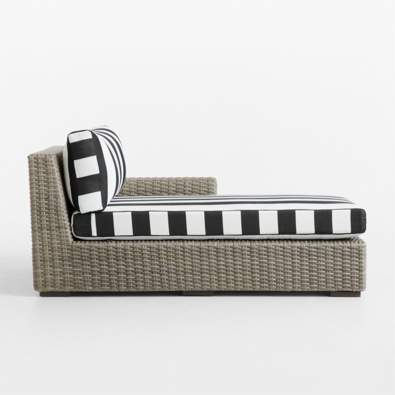 Abaco Resin Wicker Right-Arm Outdoor Chaise Lounge with Black and White Cabana Stripe Sunbrella ® Cushions