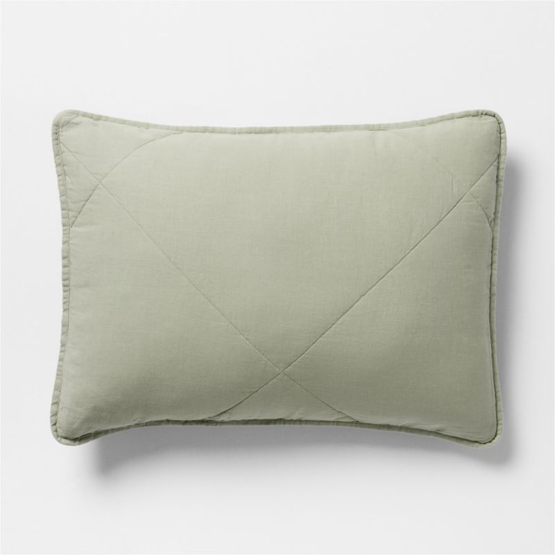 Our Aire Natural collection makes a laid-back bed dressed in cool-to-the-touch linen that sleeps cozy. The sustainably sourced fiber weaves a quilted pillow sham in a sage-inspired grey-green that serves as an elevated neutral. Stitched on the diagonal with oversized, off-center diamonds, the soft sham updates quilting for the modern bedroom. Pair the effortlessly chic sham with our other linen bedding in the same cool hue, or mix and match to keep the look fresh.