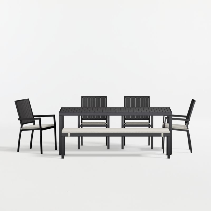 Alfresco 78" Black Metal Outdoor Dining Table Set with Bench and Canvas Natural Sunbrella ® Cushions