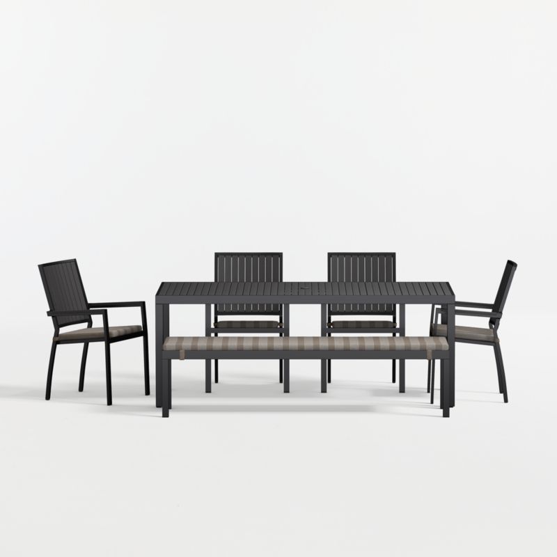 View CartAlfresco 78" Black Metal Outdoor Dining Table Set with Bench and Range Dune Stripe Sunbrella ® Cushions