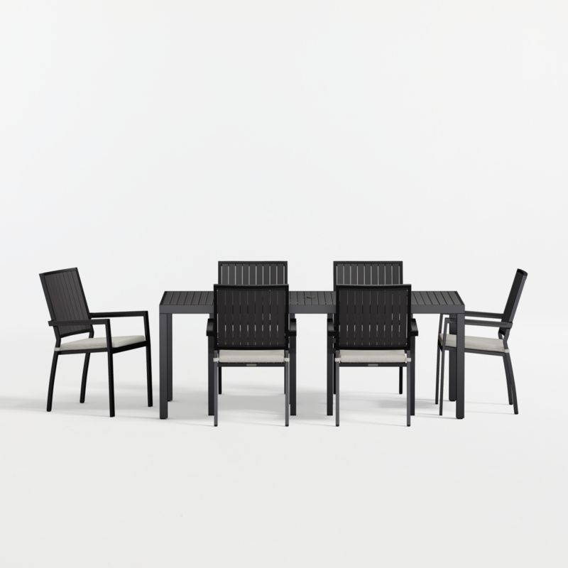 Alfresco 78" Black Metal Outdoor Dining Table Set with Canvas Natural Sunbrella ® Cushions
