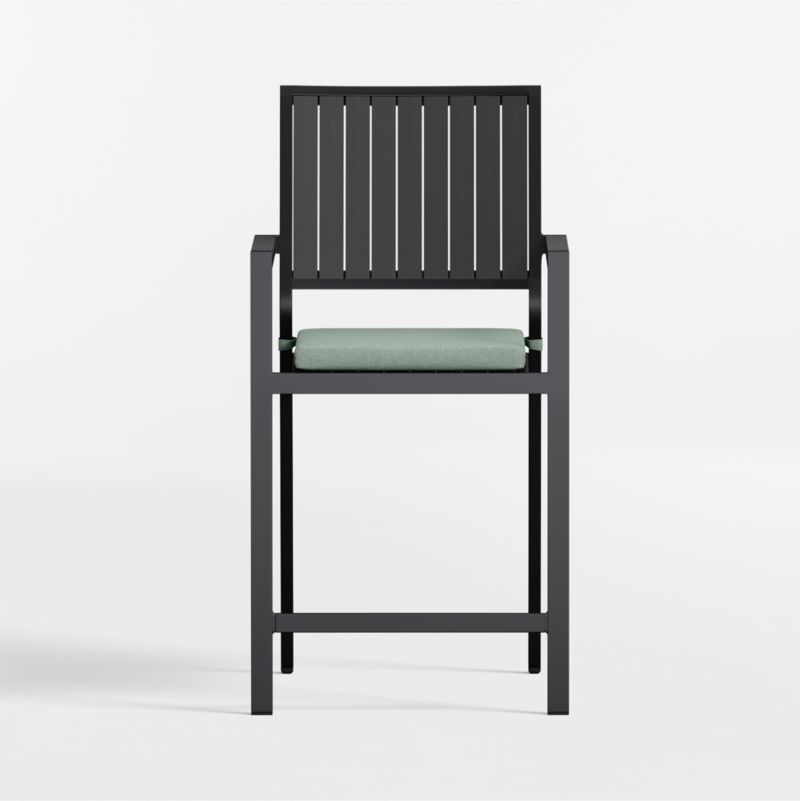 Alfresco Black Metal Outdoor Counter Stool with Canvas Spa Sunbrella ® Cushion