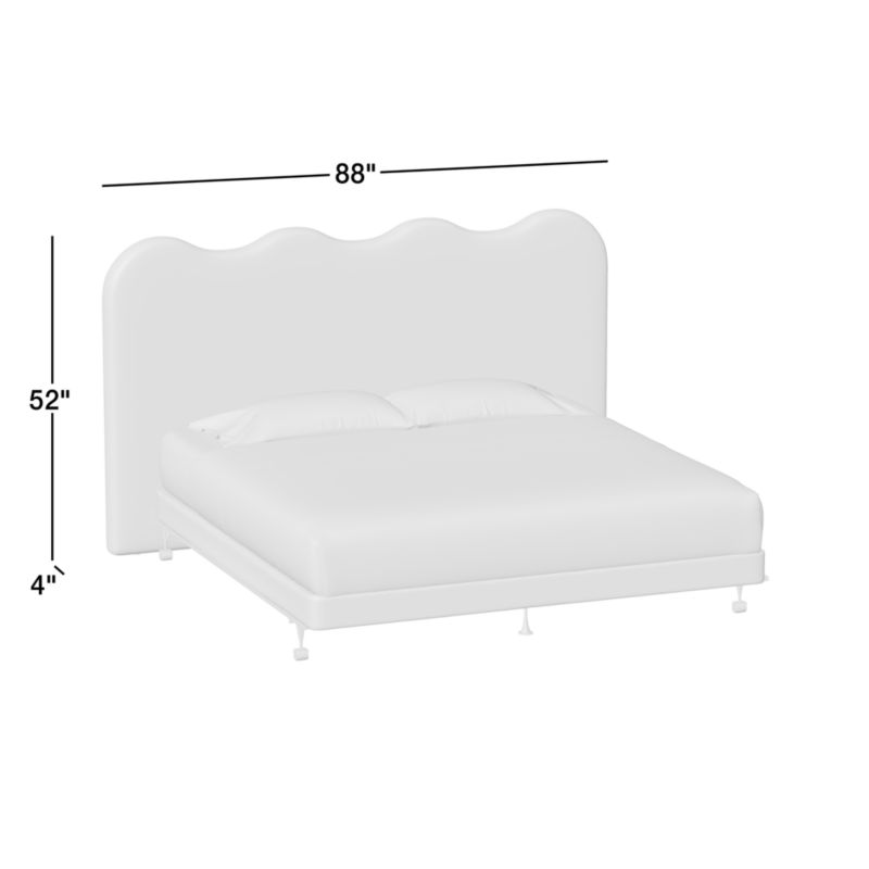 Amara Curved Upholstered King Headboard52"Hheight88"Wwidth4"DdepthMeasurements are in inches.132.08Hheight223.52Wwidth10.16DdepthcmMeasurements are in centimeters.