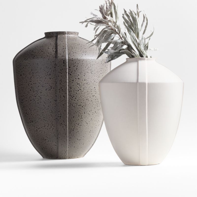 Inspired by ancient amphorae as well as Old-World glamour, Athena Calderone updates classical proportions with fascinating reactive glazes. The lustrous cream and speckled brown finishes make each ceramic vase unique. Detailed with raised strapping that lends subtle dimension, the Ancien vases look stately and classic on their own or filled with our faux branches.