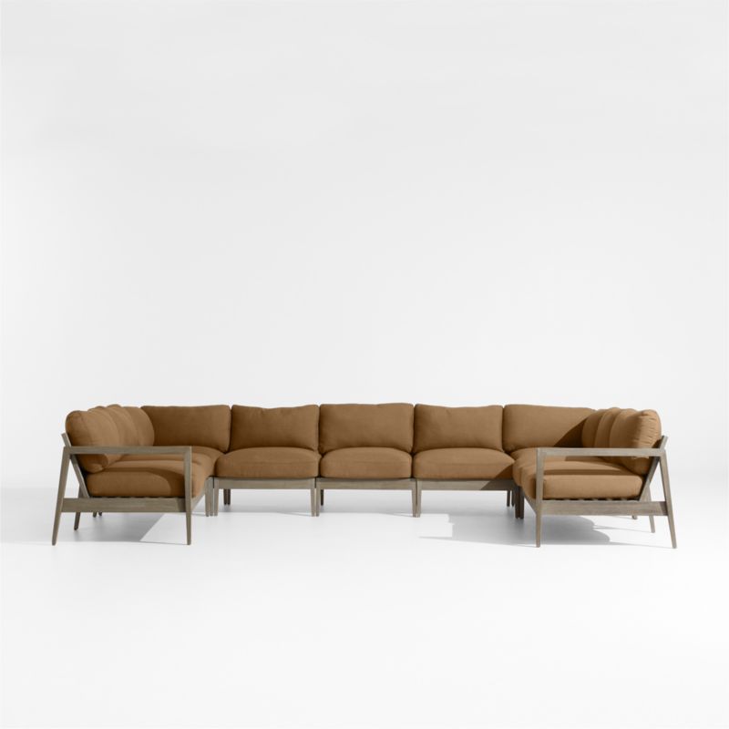 View Andorra Cast Teak Brown Sunbrella ® 7-Piece U-Shaped Outdoor Sectional Cushions - image 1 of 3