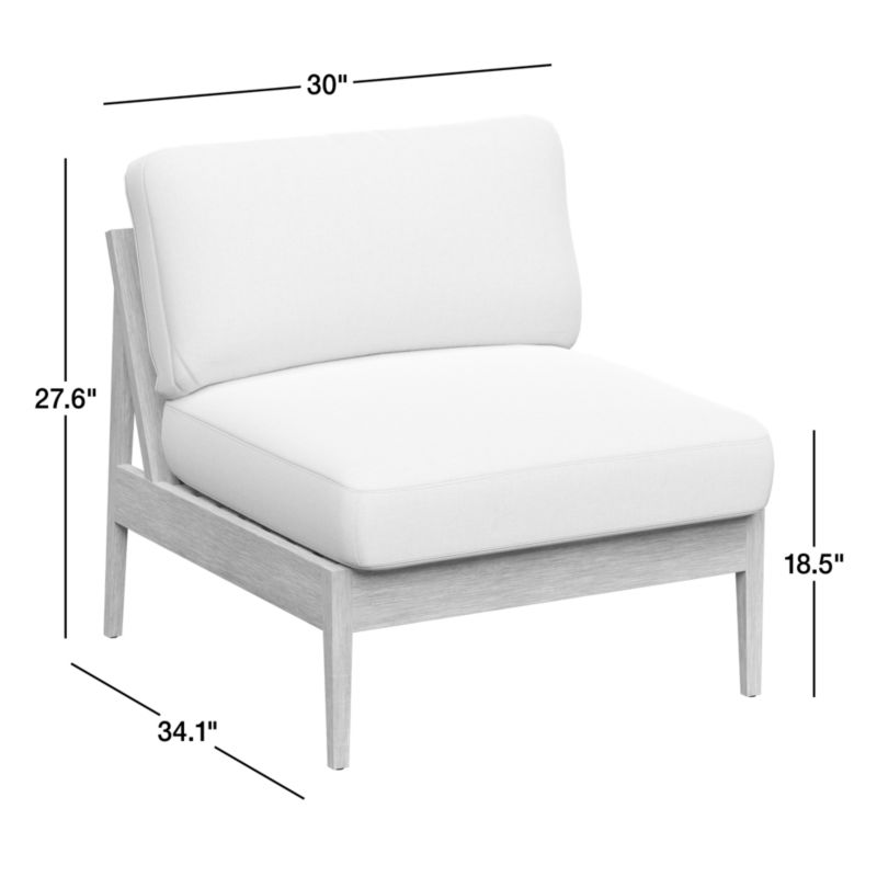 Our Andorra outdoor sectional owes its coastal cool vibe to fine workmanship and contemporary lines. Designed to look good from any view, the armless chair's clean-lined mahogany frame sets the back legs at an eye-catching angle. Bentwood eucalyptus shapes the supportive backrest out of oversized slats. Wire brushing and a grey-brown finish replicate the look of sea-weathered wood, while weather-resistant taupe seat and back cushions add an extra layer of stay-awhile comfort. To build a sectional sofa that's right for your space, combine the armless chair with your choice of other sectional components.