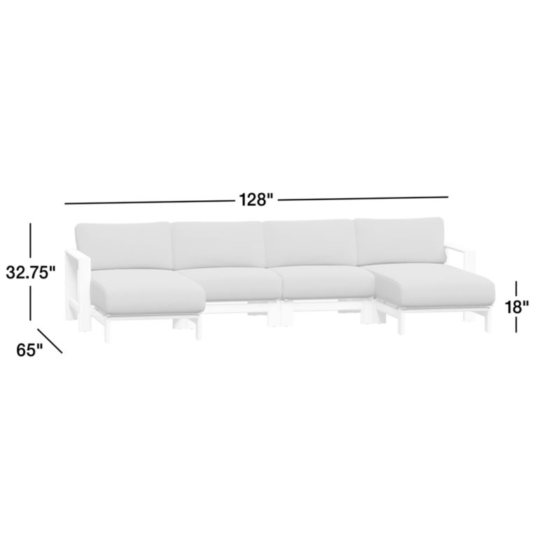 Our Anguilla double-chaise sectional is a beautiful, worry-free place to spend your lazy days. Exceptionally durable solid teak frames the sofa's angular silhouette, while thick, comfortable cushions covered in weather-resistant upholstery lull you into warm-weather bliss. The four-piece sectional sofa—right- and left-arm chaises and two armless chairs—is crafted with roomy seats, solid construction and sleek lines for ideal patio or poolside lounging.