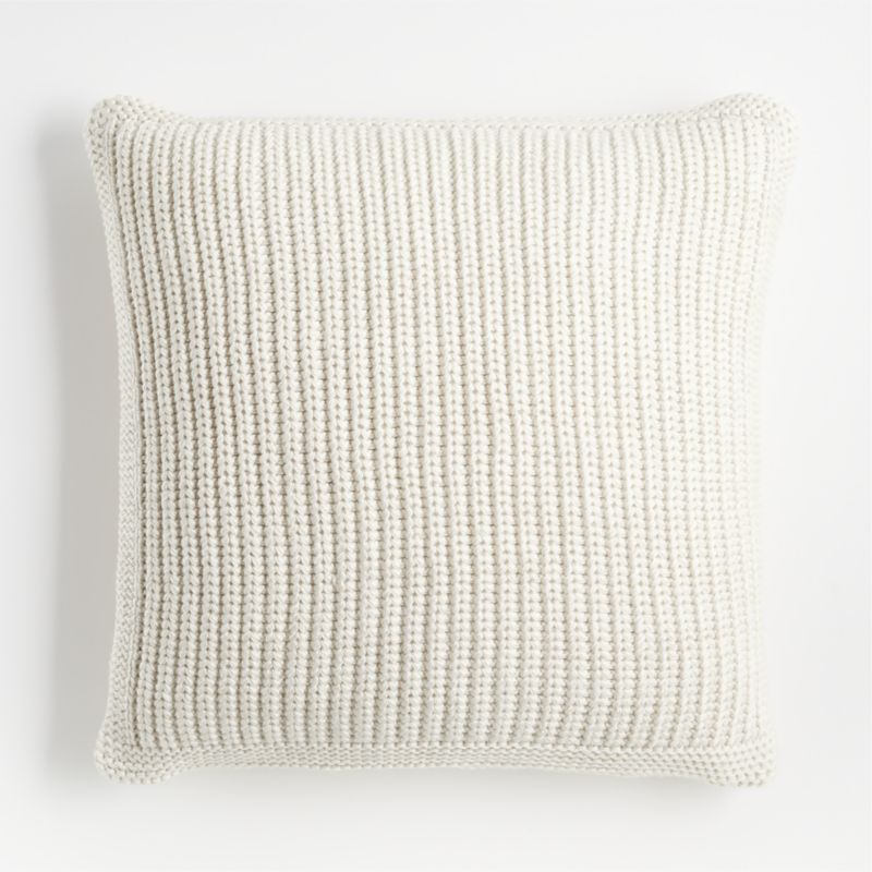 This ivory pillow cover has the classic-yet-casual look of a ribbed fisherman's sweater. Bordered on two edges with a contrast stitch, the wool-blend pillow cover pairs well with the matching throw and other pillows in our collection. For maximum comfort, fill our exclusive square pillow cover with a plush feather-down or lofty down-alternative insert (sold separately).
