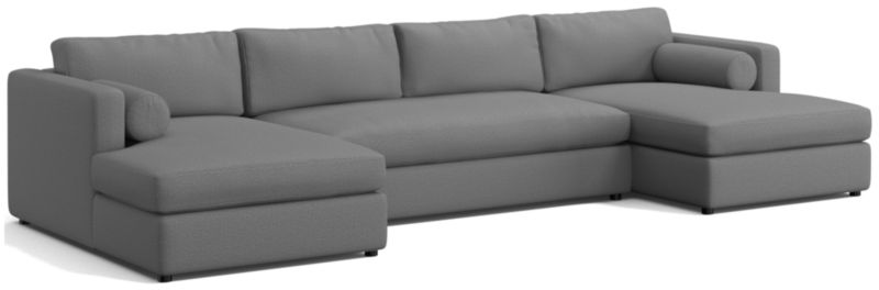 Destined to be everyone's favorite spot to chill, our Aris sectional makes modern design soft and cozy. Consisting of an armless sofa flanked by left- and right-arm chaises, the clean-lined sectional features neat track arms and broad decks. Deep bench seats and plump back cushions invite the gang to get comfortable, assisted by a couple of bolster pillows to get the snuggle just right. The Aris three-piece sectional is a Crate & Barrel exclusive.