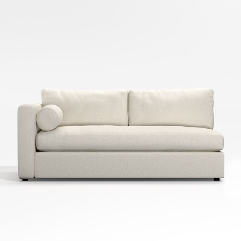 Destined to be everyone's favorite spot to chill, our Aris sectional collection makes modern design soft and cozy. A neat track arm and a broad deck establish the left-arm sofa's clean lines, while the deep bench seat and back cushions invite the gang to get comfortable. A bolster pillow aids in getting the snuggle just right. The Aris left track-arm sofa is a Crate & Barrel exclusive.