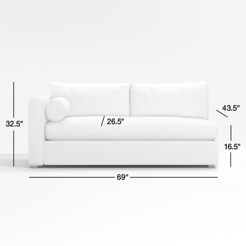 Aris Deep Left-Arm Bench Sofa Sectional Piece31.25"Hheight69"Wwidth43.5"DdepthMeasurements are in inches.79.38Hheight175.26Wwidth110.49DdepthcmMeasurements are in centimeters.