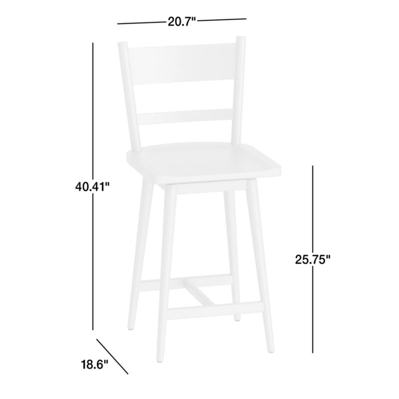 Arno's easy charm lies in its subtle design details. The slightest curve to the stool's slat back provides back support, while the sculpted seat ensures a comfortable sit at a counter or high dining table. A 180° swivel allows easy movement with a return mechanism that returns the seat to its original to keep the look tidy. Wirebrushing and an ebonized black finish call out the grain of this versatile hardwood counter stool, exclusive to Crate & Barrel.