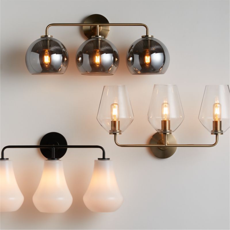 Brighten a hallway, dining room or stairway with our modern-yet-timeless Arren three-light sconce. Softly angled silver glass shades contrast compellingly with an iron base finished in gleaming brass, for a sleek three-light wall sconce at once modern and timeless. The clean-lined sconce can be positioned with its slim, arched arms facing up for ambient light or down for more focused illumination above your bathroom sink, in a hallway or over a bookcase. Designed by Mark Daniel of Slate Design exclusively for us, this three-light wall sconce is part of our Arren collection of flexible lighting options with a custom feel. Our versatile Arren lighting collection combines single- and multi-bulb pendants, sconces and lamps in a variety of configurations and finishes with elegant glass shades available in three shapes and three finishes.