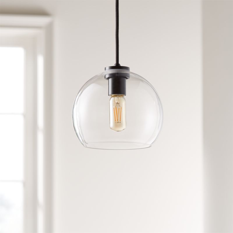 Arren Black Single Pendant Light with Clear Round Shade 8"