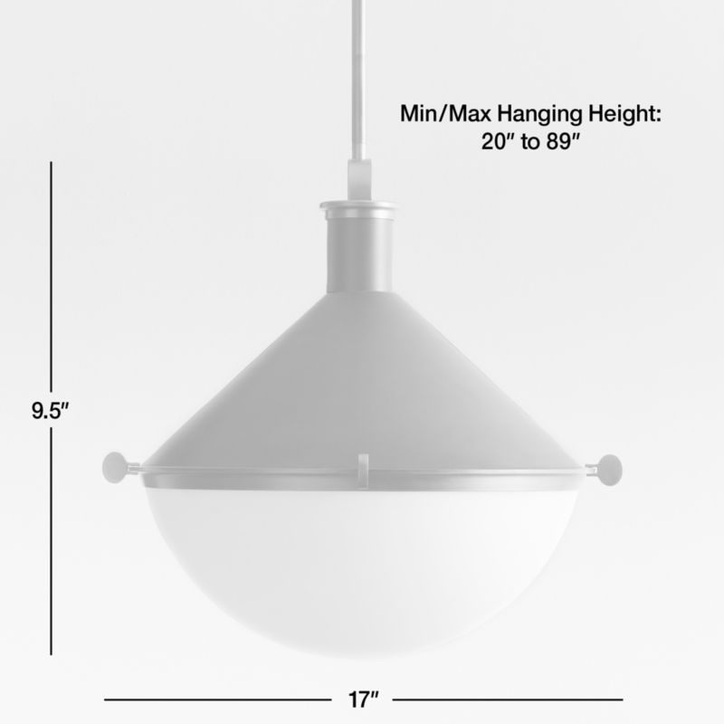 Our beautifully balanced Aster pendant suspends a conical shade from a slender downrod, all finished in dark pewter and burnished brass. The milk glass shade diffuses light flatteringly while offering cool contrast to the warm metallic finishes. Hang the pendant light on its own or in multiples over a table, island or tub. Its ring support and bolt-like hardware add an element of antique industrial beauty to the kitchen, dining room or bathroom. For a unified look, install the coordinating three-light pendant.