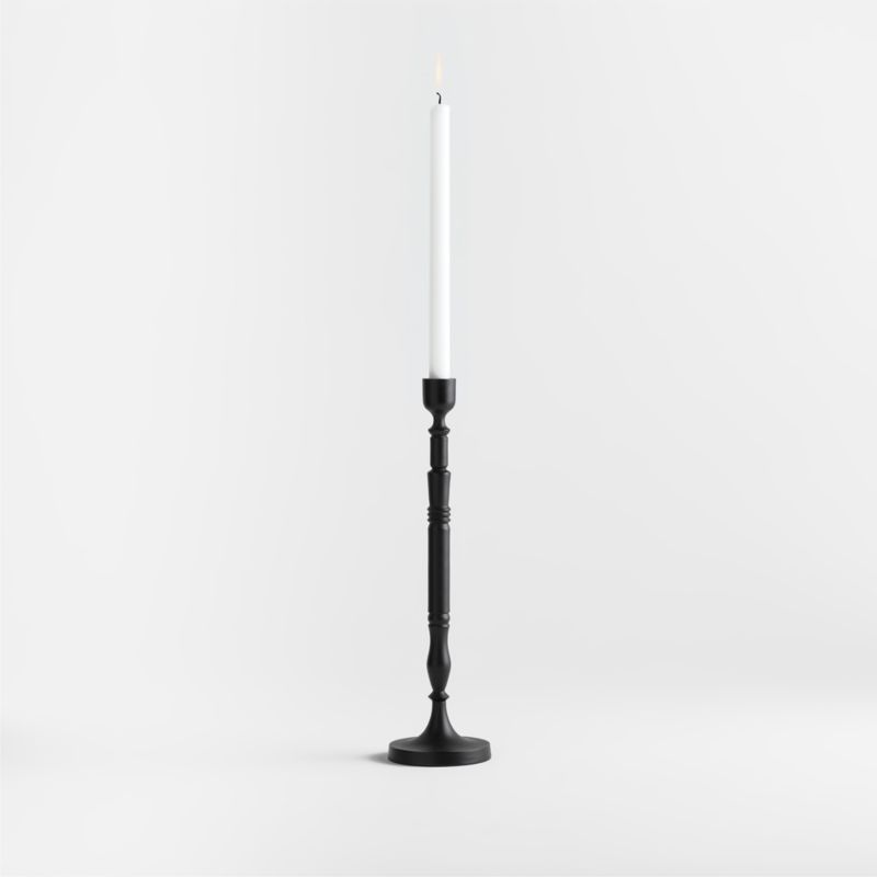 Astryd updates antique cast iron candlesticks for the modern home. Slim and streamlined with the perfect level of ornate turnings, our taper holder shows off its striking silhouette on your fireplace mantel or dining room table. For a graceful display with a touch of dark drama, group multiple heights of black metal candle holders from our exclusive Astryd collection.