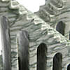 Inspired by fantastical spaces and stories, our stairways to nowhere encourage flights of fancy. This beige marble sculpture pairs two opposing staircases, one glimpsed in shadow through an airy window. Hand-carved by skilled artisans, the piece reminds us of a medieval castle or stone stairs cut into a cliffside leading down to a beach. This sculpture has a classical-yet-surreal presence on a bookshelf or mantel, especially paired with our other marble stairways.