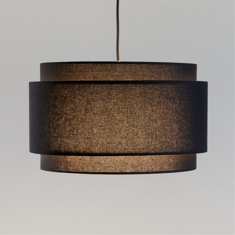 Avery Black Linen Double Drum Pendant Light 18"