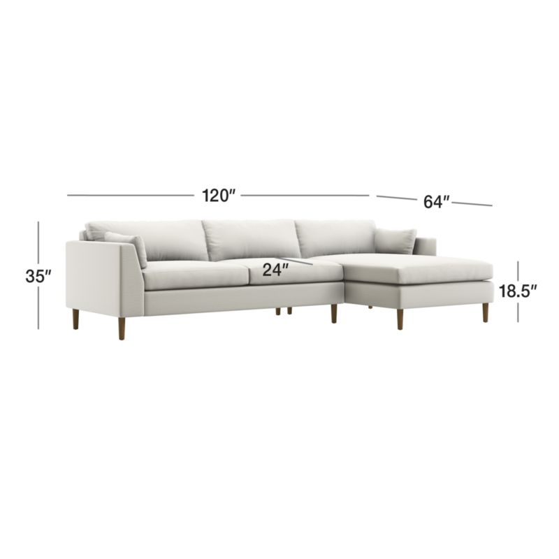 Avondale 2-Piece Sectional Sofa with Chaise Lounge29"Hheight121.5"Wwidth39"DdepthMeasurements are in inches.73.66Hheight308.61Wwidth99.06DdepthcmMeasurements are in centimeters.