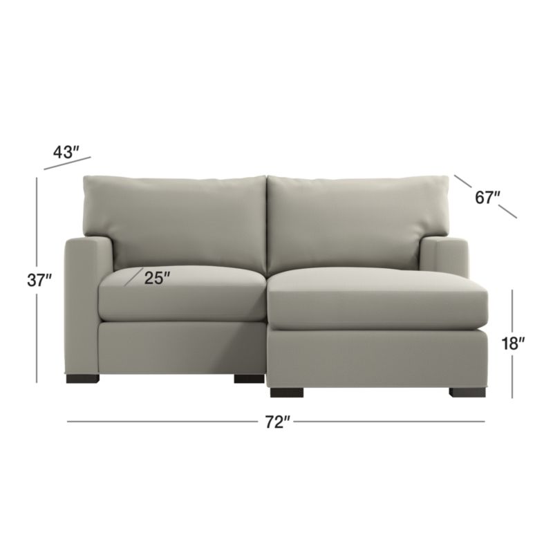 Axis 2-Piece Small Space Sectional Sofa with Chaise Lounge37"Hheight72"Wwidth67"DdepthMeasurements are in inches.93.98Hheight182.88Wwidth170.18DdepthcmMeasurements are in centimeters.