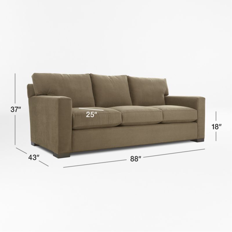 The quality and comfort of our Axis collection is legendary. Casual and inviting, the sofa offers exceptional, long-lasting durability. An angled back and deep seat cushions filled with a plush feather-down blend encourage lounging, while track arms give the sofa the clean look and modern style that make Axis a Crate & Barrel icon.