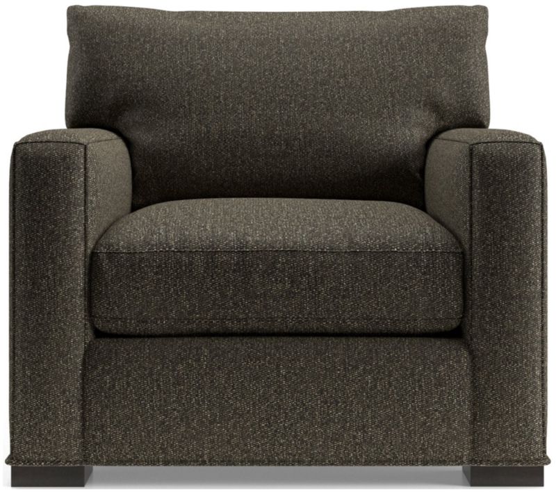 The quality and comfort of our Axis collection is legendary. Casual and inviting, the chair offers exceptional, long-lasting durability. An angled back and deep seat cushion filled with a plush feather-down blend encourage lounging, while track arms give the chair the clean look and modern style that make Axis a Crate & Barrel icon.
