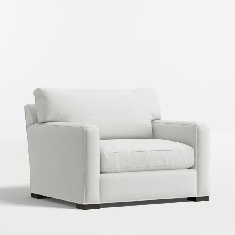 The quality and comfort of our Axis collection is legendary. Casual and inviting, the chair offers exceptional, long-lasting durability. An angled back and deep seat cushion filled with a plush feather-down blend encourage lounging, while track arms give the chair the clean look and modern style that make Axis a Crate & Barrel icon.