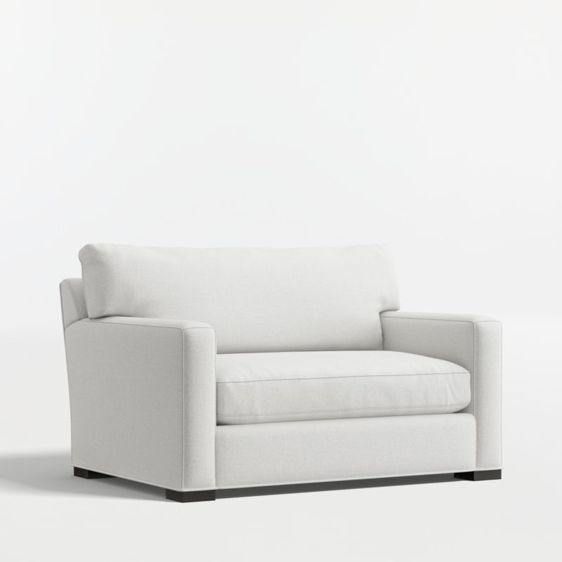 The quality and comfort of our Axis collection is legendary. Casual and inviting, the chair offers exceptional, long-lasting durability. An angled back and deep seat cushion filled with a plush feather-down blend encourage lounging, while track arms give the chair the clean look and modern style that make Axis a Crate & Barrel icon.