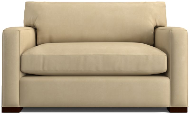 The quality and comfort of our Axis collection is legendary. Casual and inviting, the sleeper sofa offers exceptional, long-lasting durability as a sofa or as a bed. The pull-out twin mattress is ultra comfortable and has a locking, tilt-up headrest for late-night reading or TV viewing. The sofa's angled back and deep seat cushions filled with a plush feather-down blend encourage lounging, while track arms give the sofa the clean look and modern style that make Axis a Crate & Barrel icon.