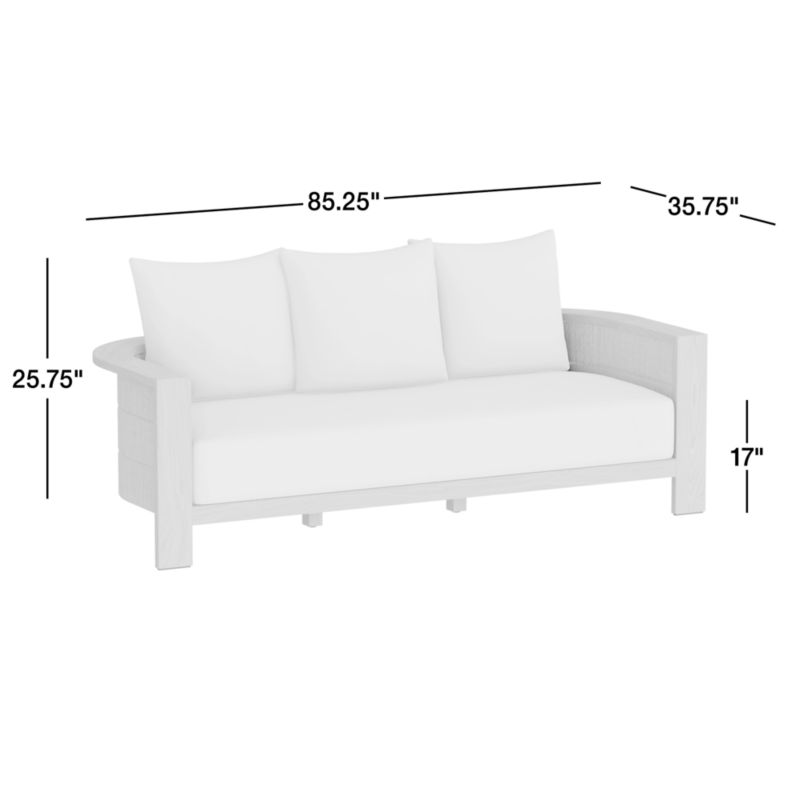Easy, breezy Bali is designed for slowing down and unwinding. An effortless retreat, the outdoor sofa is crafted of gorgeous solid teak and all-weather wicker. No detail is spared to ensure long-lasting durability and eye-catching style. The simple barrel back is wrapped inside and out with three tiers of wicker, and the legs converge with the back panel in a slightly offset stance for added interest. Mitered waterfall edges let the wood grain run down the front of the arms. A plush bench seat cushion and back pillows upholstered in weather-resistant Sunbrella fabric layers on luxurious comfort.