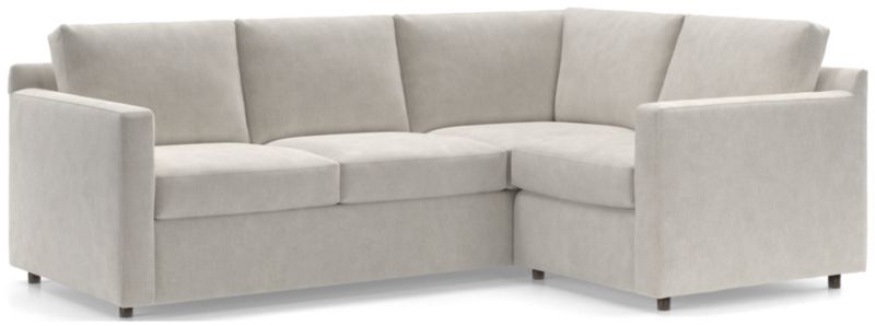 Barrett makes modern sectional seating affordable and carefree. Composed of a left-arm corner sofa and right-arm chair, the two-piece sectional offers comfy seat and back cushions on a trim frame with track arms and a low-rise back. Upright yet relaxing, this versatile sectional is designed to keep its look casual and clean, even in high-traffic family rooms. The Barrett II 2-piece sectional is a Crate & Barrel exclusive.