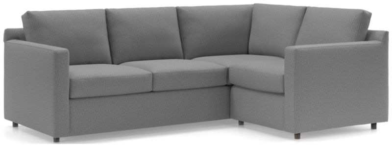 Barrett makes modern sectional seating affordable and carefree. Composed of a left-arm corner sofa and right-arm chair, the two-piece sectional offers comfy seat and back cushions on a trim frame with track arms and a low-rise back. Upright yet relaxing, this versatile sectional is designed to keep its look casual and clean, even in high-traffic family rooms. The Barrett II 2-piece sectional is a Crate & Barrel exclusive.