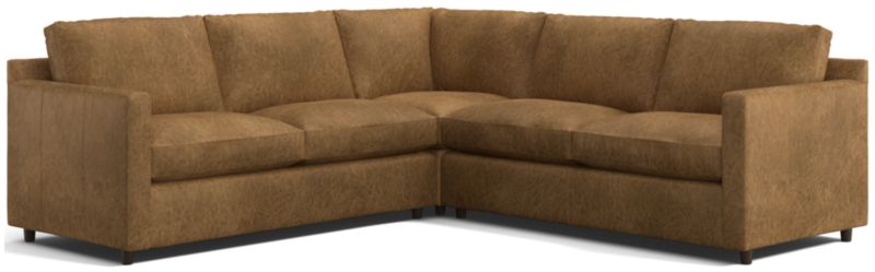Barrett makes leather seating comfortable, casual and modern. Like fine leather apparel, the full-grain leather feels buttery to the touch and tailors the sectional's clean lines with a graceful drape. Consisting of a corner and left- and right-arm apartment sofas, the three-piece sectional sits upright and comfortable and is styled with track arms, topstitching and recessed legs that float its stylish silhouette.