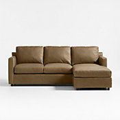 Barrett makes leather seating comfortable, casual and modern. Like fine leather apparel, the full-grain leather feels buttery to the touch and tailors the sofa's clean lines with a graceful drape. Sitting upright yet comfortable, the lounger combines a right-arm sofa with a left-arm storage chaise for a footprint that's ideal for smaller spaces. Simply lift up the chaise cushion to find generous storage space for pillows, blankets and games.