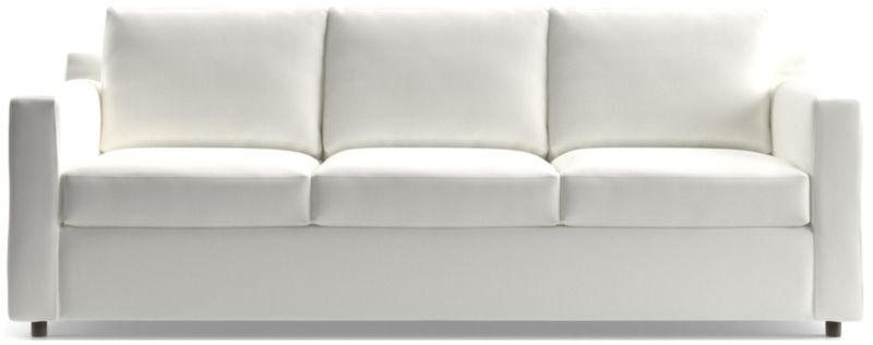 Barrett makes modern affordable and carefree. Upright yet comfortable, this roomy sleeper sofa sectional is designed to keep its look casual and clean, even in high-traffic family rooms. This comfy sleeper features a comfortable mattress and a locking tilt-up headrest for reading and media viewing. The Barrett II 3-Seat Queen Sleeper is a Crate & Barrel exclusive.