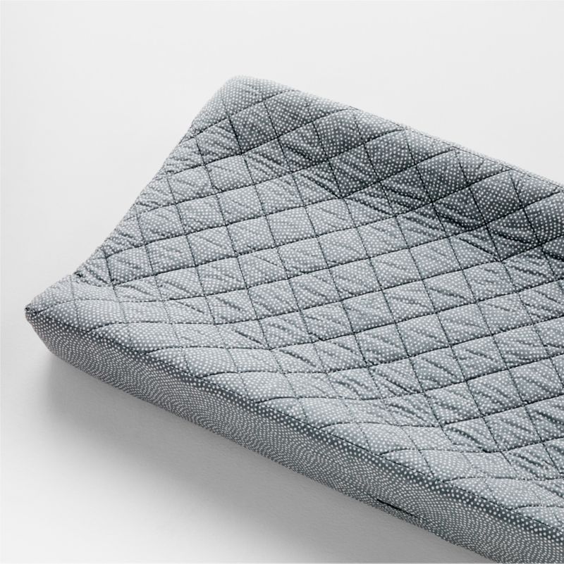 Pure organic cotton fabric makes this batik changing pad cover a comfy, breezy choice for your little one. Countless dainty white dots pattern the mist blue cover in graceful arcs, for a kid-friendly look in an elevated color story. For a coordinated nursery, add the other pieces in our exclusive bedding collection.