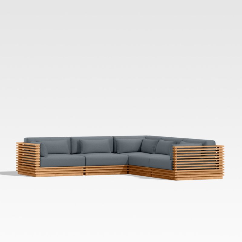 • View Batten Natural Teak 5-Piece L-Shaped Outdoor Sectional Sofa with Canvas Haze Blue Sunbrella ® Cushions - image 6 of 7