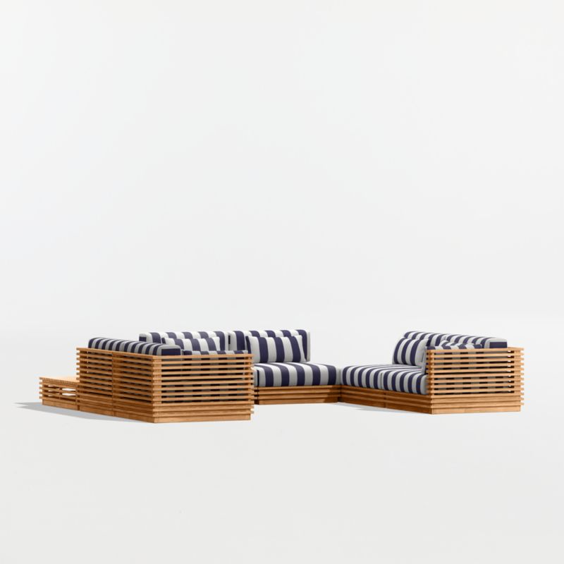 • View Batten Natural Teak 8-Piece U-Shaped Outdoor Sectional Sofa with Corner Coffee Tables & Navy and White Cabana Stripe Sunbrella ยฎ Cushions - image 13 of 13