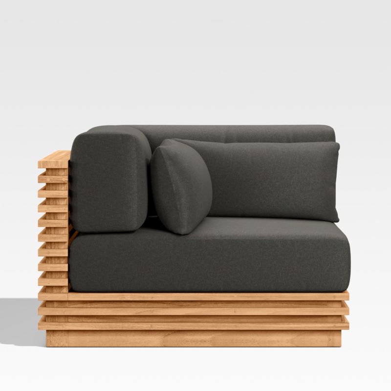 Batten Natural Teak Outdoor Corner Chair with Charcoal Cushions