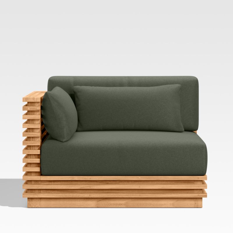 Batten Natural Teak Outdoor Sectional Chair with Cast Sage Green Sunbrella ® Cushions