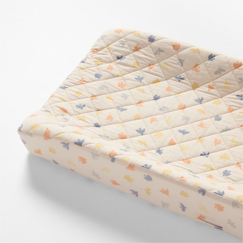 Our Birdie Blossoms changing pad cover brings a nature-inspired touch to the changing table. Sweet, softly colored birds flutter across the surface of cool 100% organic cotton percale, quilted for extra comfort. Pair it with our Birdie Blossoms crib sheet and quilt for a coordinated nursery look.