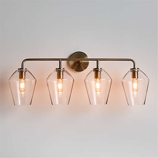 Add contemporary flair to the home with brass sconces. The spirit of industrial design melds with warm lighting to produce an eye-catching accent piece. Highlight a living room centerpiece by placing two sconces on either side of a breathtaking piece of wall art for a touch of texture. Hang the wall fixtures alongside the bathroom mirror for additional light and decor. In the bedroom, opt for an adjustable light fixture that doubles as a reading light perfect for enjoying a captivating book before bed. Design a symmetrical backdrop by propping brass sconces on either side of a home office window. To create an intimate atmosphere in the dining room, affix a candle holder to the wall to produce a compelling source of warmth. Evoke a modern aesthetic in the guest room by complementing the bed with a glass shade fixture that diffuses a cozy light throughout the room. Set up a sconce in an entryway to illuminate a decorative sideboard or bench for a welcoming foyer.